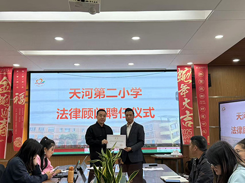 仪式结束后,张新华律师和姜杨益律师表示,将秉持专业、严谨、负责的态度,为学校提供全方位的法律服务,助力天河二小提升法治管理水平,培养师生的法治意识,共同营造依法办学、依规育人的良好校园氛围。张新华律师还为全体老师开展了预防校园欺凌中学校需要加强的注意事项的讲座。